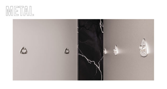 La gamma Metal è raccomandata per le applicazioni più pesanti che richiedono un invisibile e robusto fissaggio, con una resistenza al metallo e al fuoco. lo spazio tra pannello e substrato è minimo.